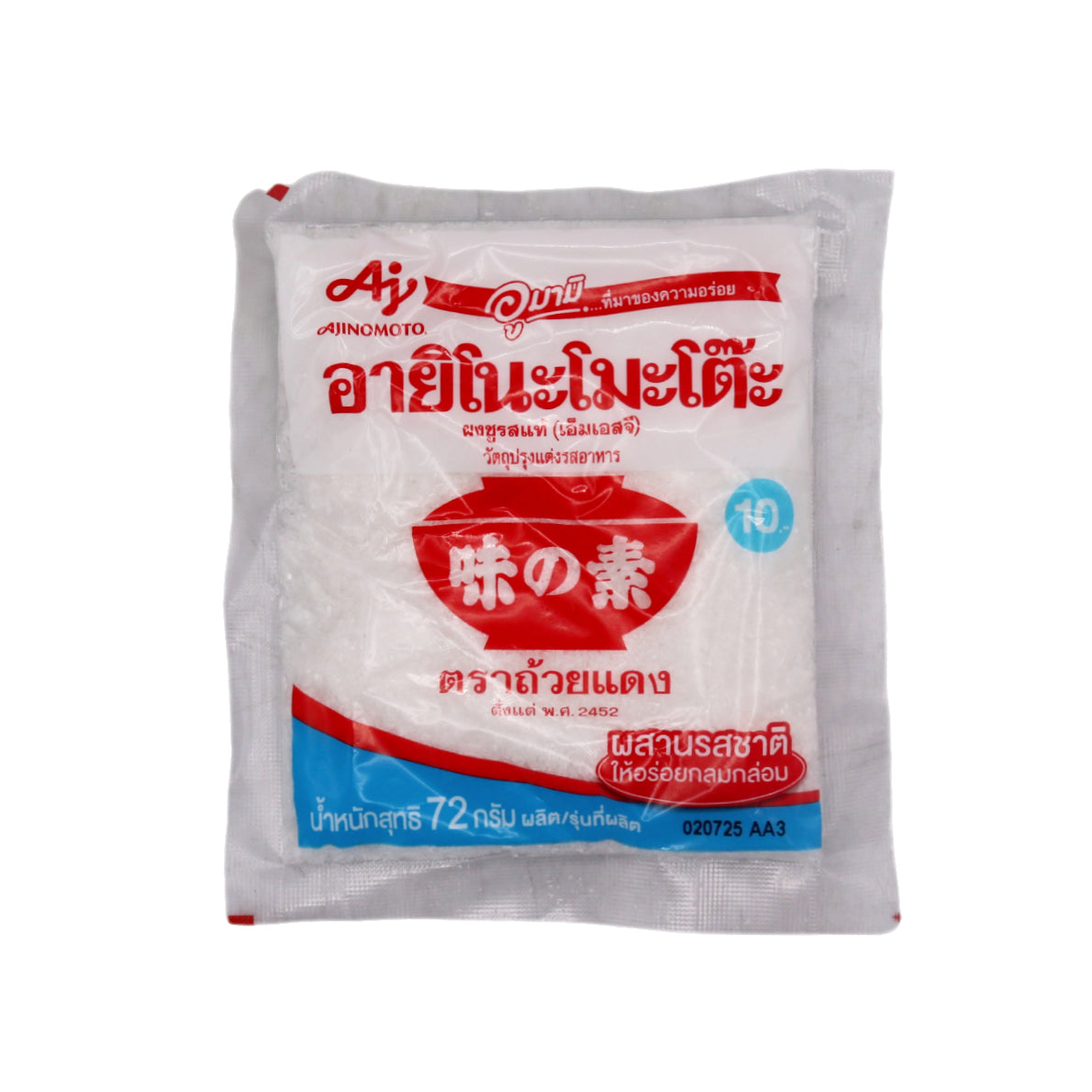 Description: Ajinomoto Monosodium Glutamate 72g. Also known as MSG, Monosodium Glutamate is used as an ingredient to enhance the natural flavours of foods such as meat, poultry, soups, stews, casseroles, gravies, seafood, snacks and vegetable dishes. Glutamate itself is also found naturally in foods such as corn, green peas, mushrooms and tomatoes.