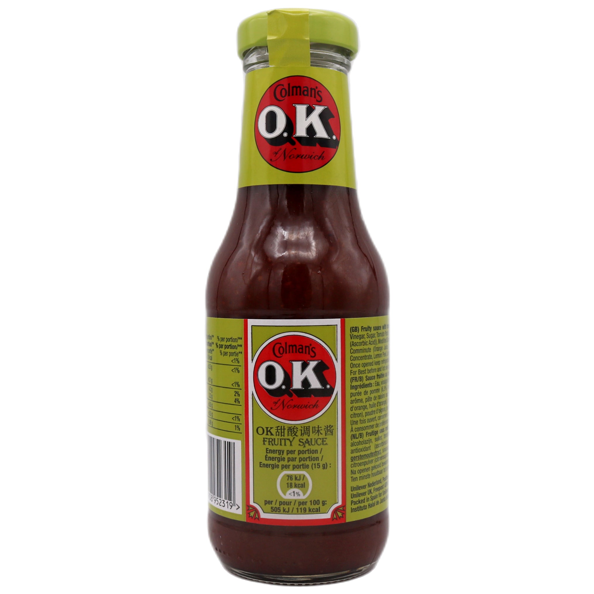 Description: Colman's O.K. Fruity Sauce 甜酸調味醬 335g. Colman's O.K. Fruity Sauce is a unique and flavourful blend of sweet and savoury spices. This 335g bottle of sauce is packed with flavour and the perfect balance of sweet and sour. It can be used to add flavour to your favourite dishes or as a dip with your favourite snacks. Enjoy a delicious and convenient condiment with Colman's O.K. Fruity Sauce.