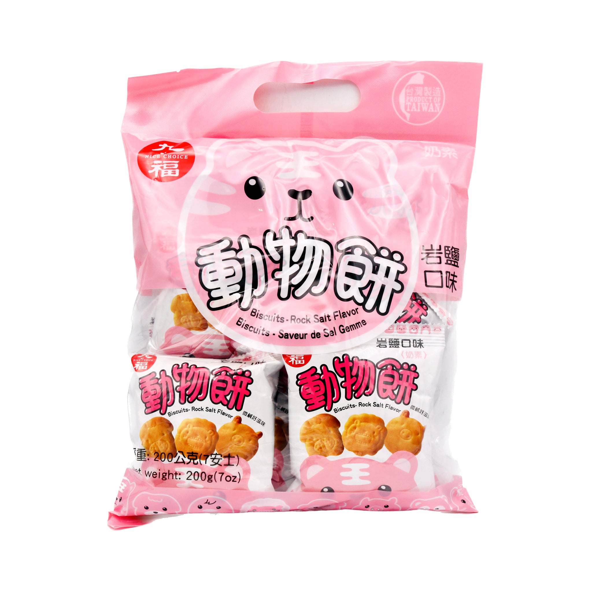 Description: Nice Choice Rck Salt Flavoured Biscuits 九福動物造型餅乾 (岩鹽口味) (25g*8 Pcs) 200g. 8 packets of delicious rock salt flavoured biscuits, perfect for sharing!