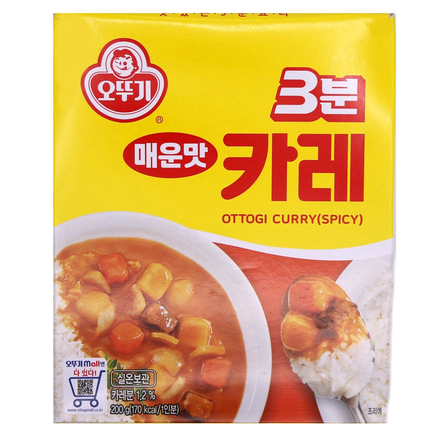 Description: Ottogi Curry Spicy 200g. Ottogi 3 Minute Curry is a harmony of curry powder from natural tropical spices, Korean fruits, and tropical fruit puree, providing a great combination of rich and soft taste. Perfect for spice lovers!