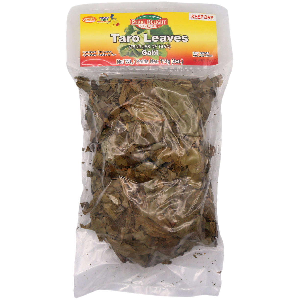 Description: Pearl Delight Taro Leaves 114g. Pearl Delight Taro Leaves deliver authentic Southeast Asian flavour in a convenient 114g package. These tender, pre-prepared taro leaves are ideal for traditional curries, stir-fries, and soups, offering a subtle, earthy taste with a delicate texture. Rich in fibre and essential nutrients, they're a versatile ingredient for home cooks seeking genuine regional cuisine. Simply heat and serve alongside coconut milk-based dishes or incorporate into your favourite Asian recipes. A staple for those who appreciate quality, traditional ingredients.