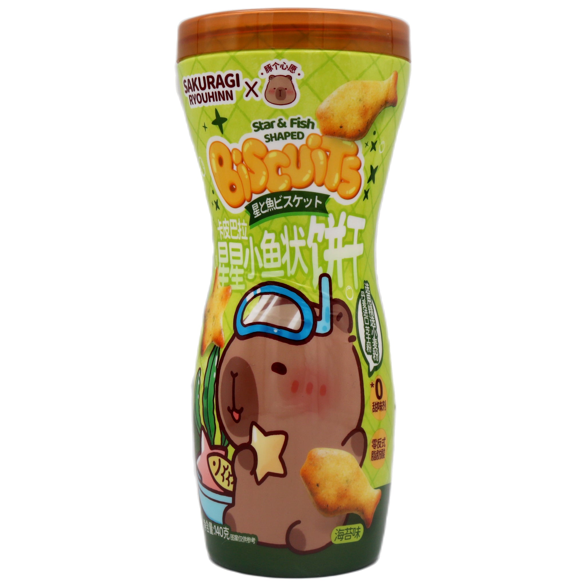 Description: Sakuragi x Ryouhinn Star & Ship Shaped Biscuits Nori Flavour 卡皮巴拉星星小魚餅乾 海苔味 140g. Sakuragi x Ryouhinn presents Star & Ship Shaped Biscuits Nori Flavour, a 140g pack of uniquely crafted seaweed-flavoured snacks. These biscuits combine playful star and ship shapes with a crisp texture, delivering a balanced umami taste. Ideal for a sophisticated palate seeking a light, savoury treat, they offer a convenient and stylish snack option that pairs well with tea or light beverages. Perfect for those appreciating quality ingredients and artistic design in their snacks.