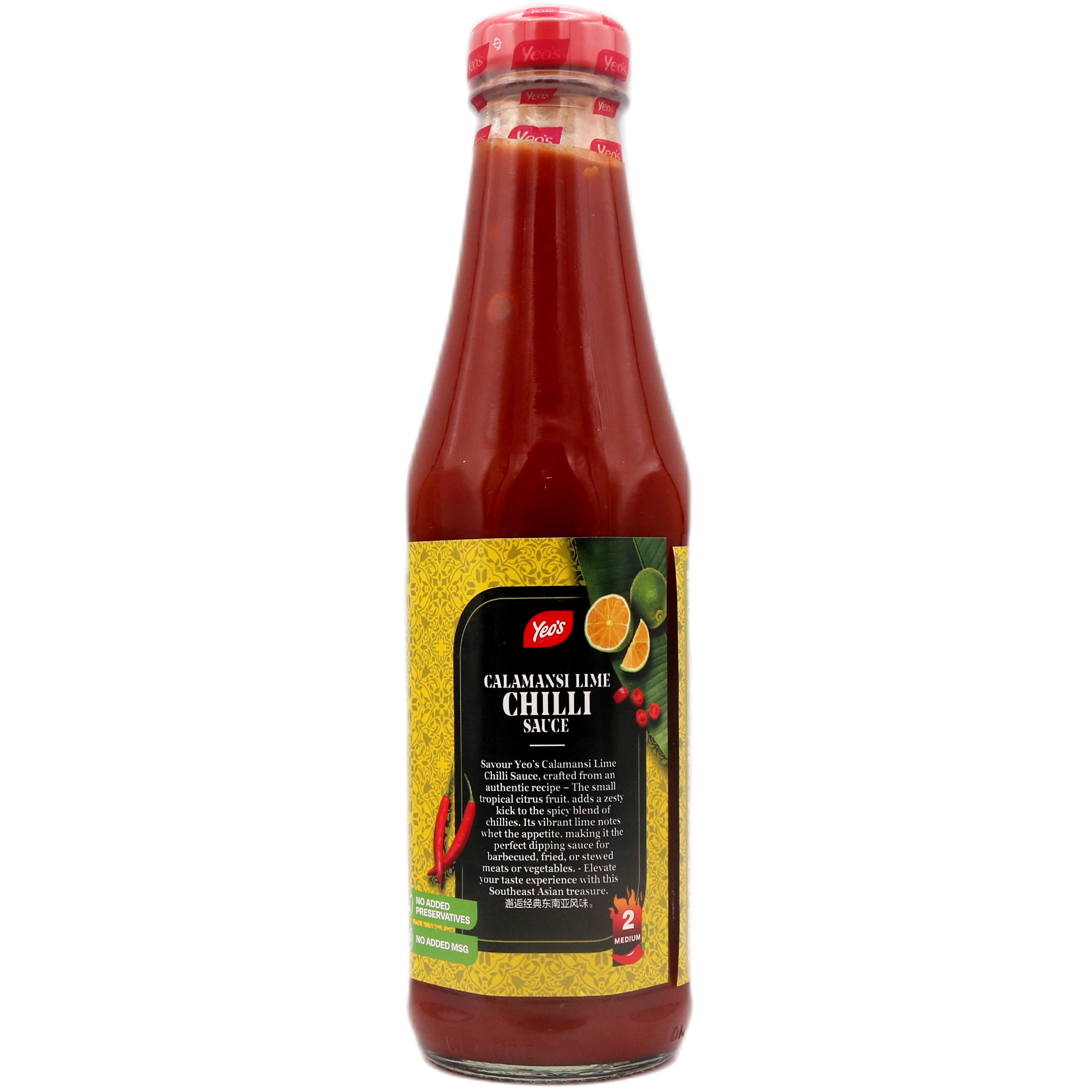 Description: Yeo's Calamansi Lime Chilli Sauce 330ml/ 330g. Transform your dishes with Yeo's Calamansi Lime Chilli Sauce, a vibrant blend of tangy citrus and fiery heat. This 330ml bottle combines the distinctive flavour of calamansi with zesty lime and bold chilli for a versatile condiment that elevates everything from grilled meats to seafood and vegetables. Perfect for dipping, drizzling, or marinating, it brings authentic Southeast Asian taste to your table. Add depth and excitement to everyday meals with this essential sauce.